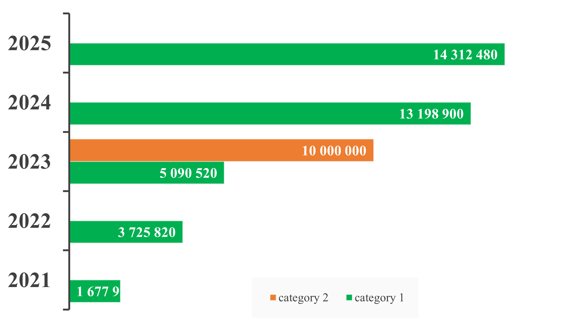1) The first category contains rationalisation initiatives that have no or little economic impact. These are rationalisation suggestions, the implementation of which is predicted to have no economic impact or to have an economic impact of up to KZT 5,000,000 (five million tenge). The payment for first-category rationalisation proposals is calculated in accordance with the RIA Rules and cannot exceed MCI 520 (five hundred twenty monthly calculated indexes).